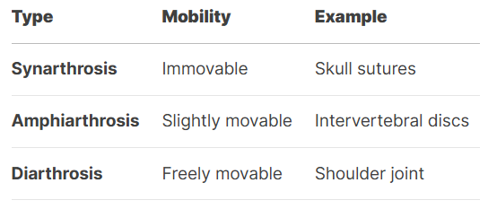 A joint is a connection between bones or cartilage, facilitating movement or providing structural support. Joints vary in mobility: