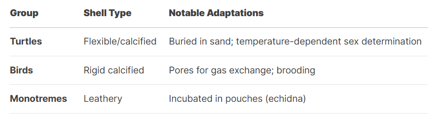 - Monotremes: Leathery, resembling reptilian eggs.